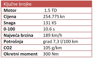 Motor u testnom modelu bio je dobro već znani 1,5-litreni HDi od 130 KS. Iako djeluje malo za auto od 1.6 tona, kombinacija s osamstupanjskim automatikom daje odlične rezultate. U gradskoj vožnji potrošnja se kretala oko 7,3 litre, dok na otvorenom držeći se propisa možete bez problema možete proći s još litru do dvije manje. 300 Nm dovoljno je za brzo pokretanje poprilične karoserije pa tako za ubrzanje do 100 km/h nećete trebati ni 11 sekundi.