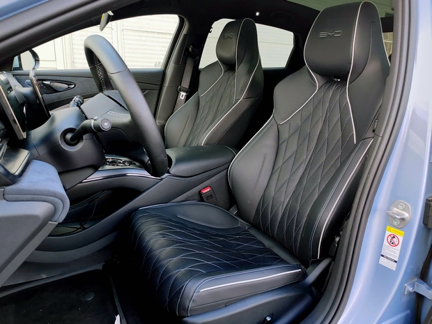 Sjedala su iz jednog dijela, udobna i pružaju dobru bočnu potporu, mali volan je bogato tapeciran i odlično sjedi u rukama. Po osjećaju podsjeća na M i AMG modele, što svakako nije loše. Za one koje zanima, središnji ekran se može okrenuti pa ga možete koristiti i u vodoravnom i u okomitom položaju, što je karakteristično za BYD modele. No nas to nije previše interesiralo.